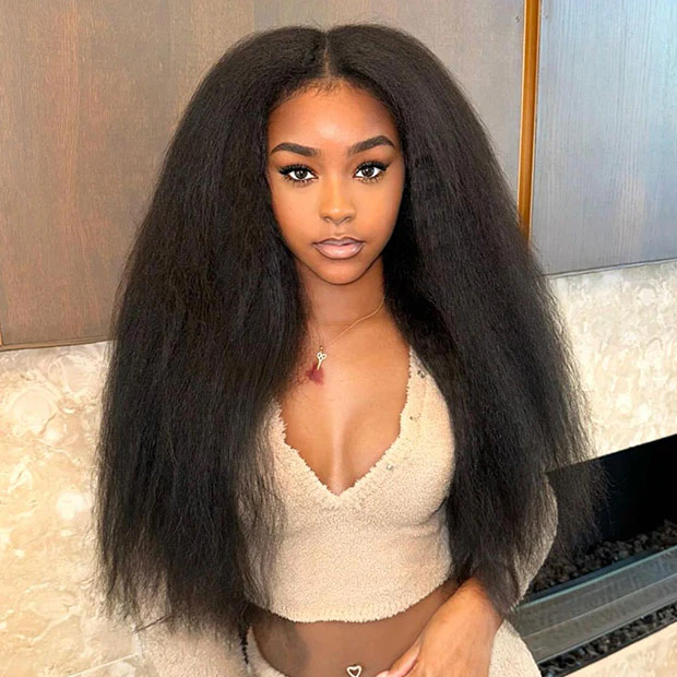 $100 Off Kinky Straight Wear Go Glueless Human Hair Wigs 180% Density Pre Cut Lace