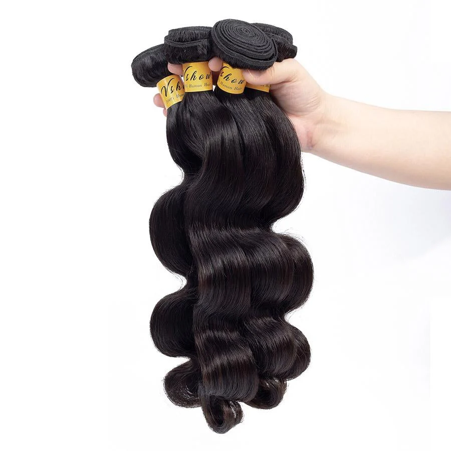 VSHOW HAIR Premium 9A Brazilian Human Virgin Hair Body Wave Natural Black 4 Bundles Deal