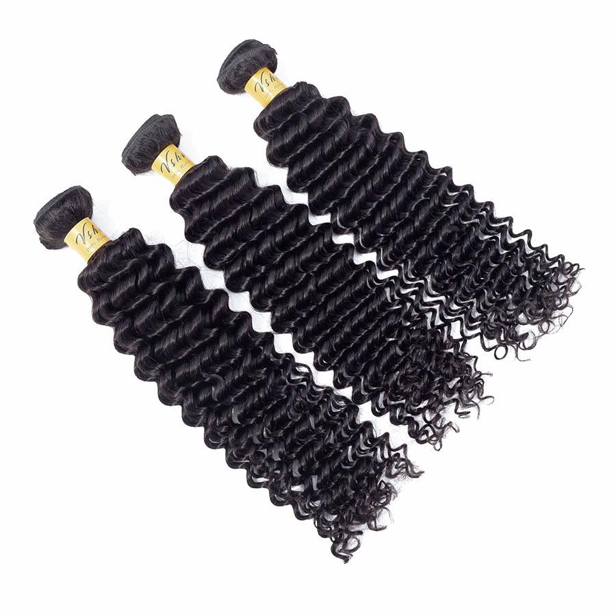 VSHOW HAIR Premium 9A Indian Human Virgin Hair Deep Wave Natural Black 3 Bundles Deal