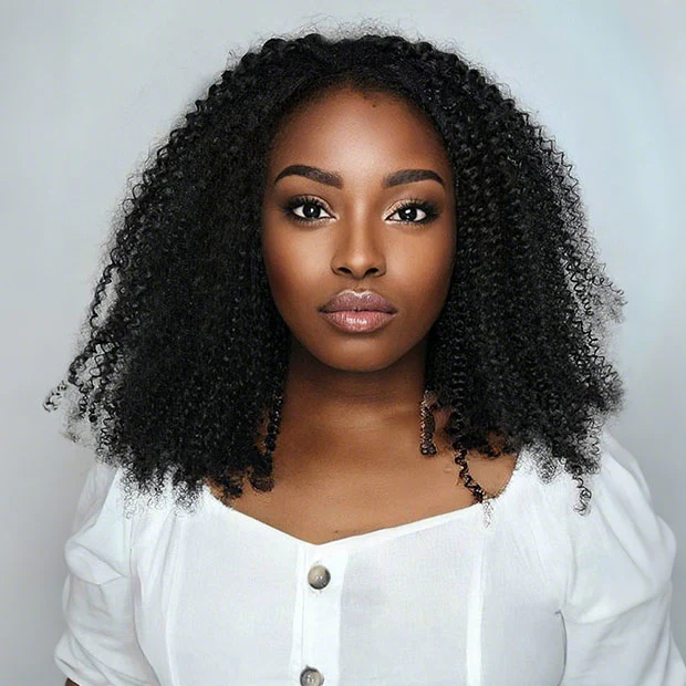 Drawstring Kinky Curly Half Wig Full Machine Made Natural Hairline 250% Density Blend With Natural Hair