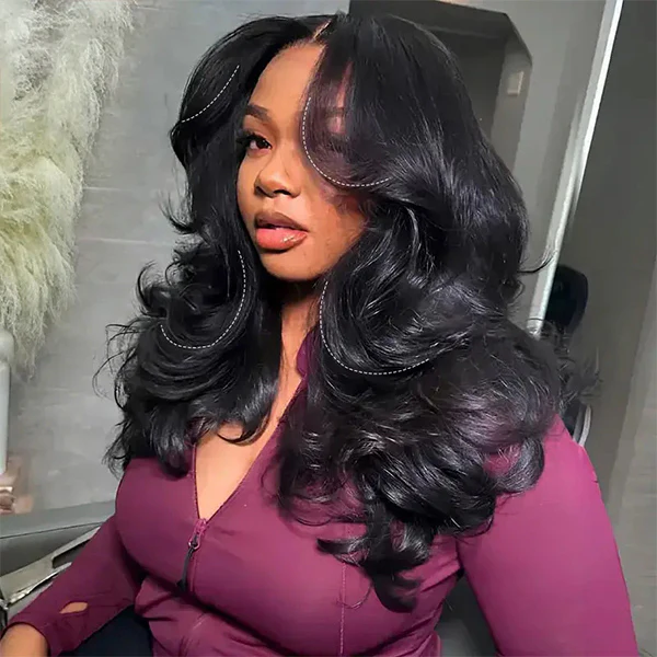 Layered Cut Pre-bleached 7x5 Wear Go Wigs 180% Density Face-Framing Body Wave Human Hair Wigs